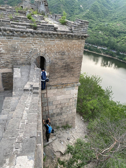 他說,登野長城是不允許的,近年來,北京市文物局也加大了巡查力度,設(shè)置了一些負(fù)責(zé)長城環(huán)保的公益志愿者和長城保護(hù)工作人員巡山。如果被發(fā)現(xiàn),梯子肯定要被鄉(xiāng)鎮(zhèn)沒收。據(jù)稱,登城所用的梯子就被鄉(xiāng)鎮(zhèn)沒收了3次。為保險(xiǎn)起見,他會(huì)早晨放梯,晚上再撤掉。