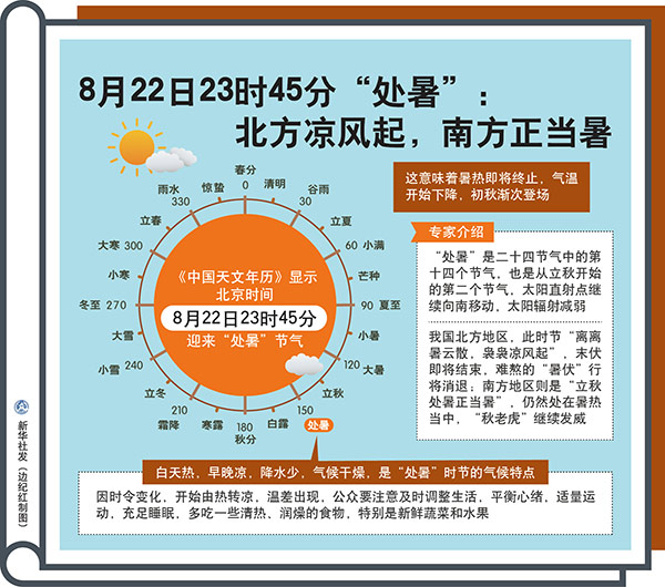 圖表:8月22日23時45分“處暑”:北方?jīng)鲲L(fēng)起,南方正當(dāng)暑 新華社發(fā) 邊紀紅 制圖