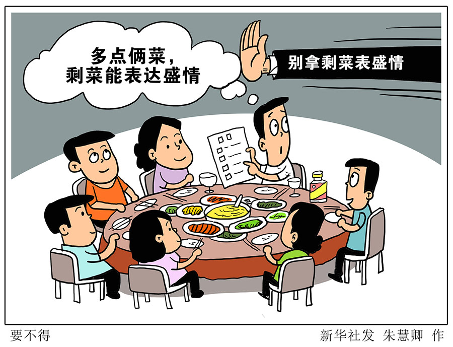 習(xí)近平總書記近日作出重要指示,強(qiáng)調(diào)堅(jiān)決制止餐飲浪費(fèi)行為切實(shí)培養(yǎng)節(jié)約習(xí)慣,在全社會(huì)營造浪費(fèi)可恥節(jié)約為榮的氛圍。這一重要指示發(fā)人深省、飽含啟示。在日常生活中,主客散席時(shí)留下半桌剩菜的場面并不少見,寧可點(diǎn)多、絕不能少,這種以剩菜表達(dá)盛情的心態(tài)和行為要不得。