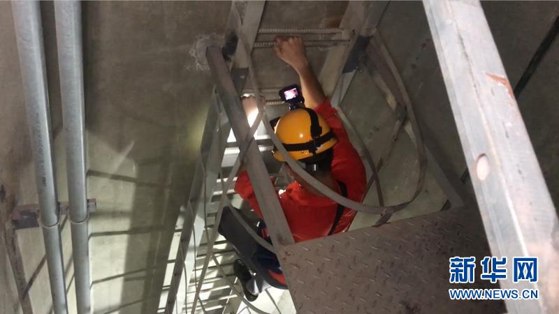 8月12日凌晨兩點,贛州工務段贛州高鐵路橋工區(qū)工長寧建平攀登檢查梯,檢查橋塔斜拉索上部鋼錨箱內(nèi)設備狀態(tài)。南昌鐵路局供圖