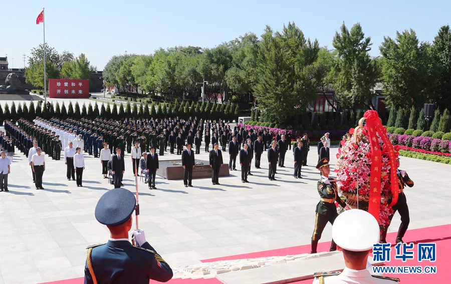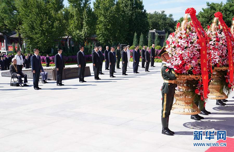 9月3日上午,習(xí)近平、李克強、栗戰(zhàn)書、汪洋、王滬寧、趙樂際、韓正、王岐山等黨和國家領(lǐng)導(dǎo)人來到中國人民抗日戰(zhàn)爭紀(jì)念館,出席紀(jì)念中國人民抗日戰(zhàn)爭暨世界反法西斯戰(zhàn)爭勝利75周年向抗戰(zhàn)烈士敬獻(xiàn)花籃儀式。 新華社記者 王曄 攝