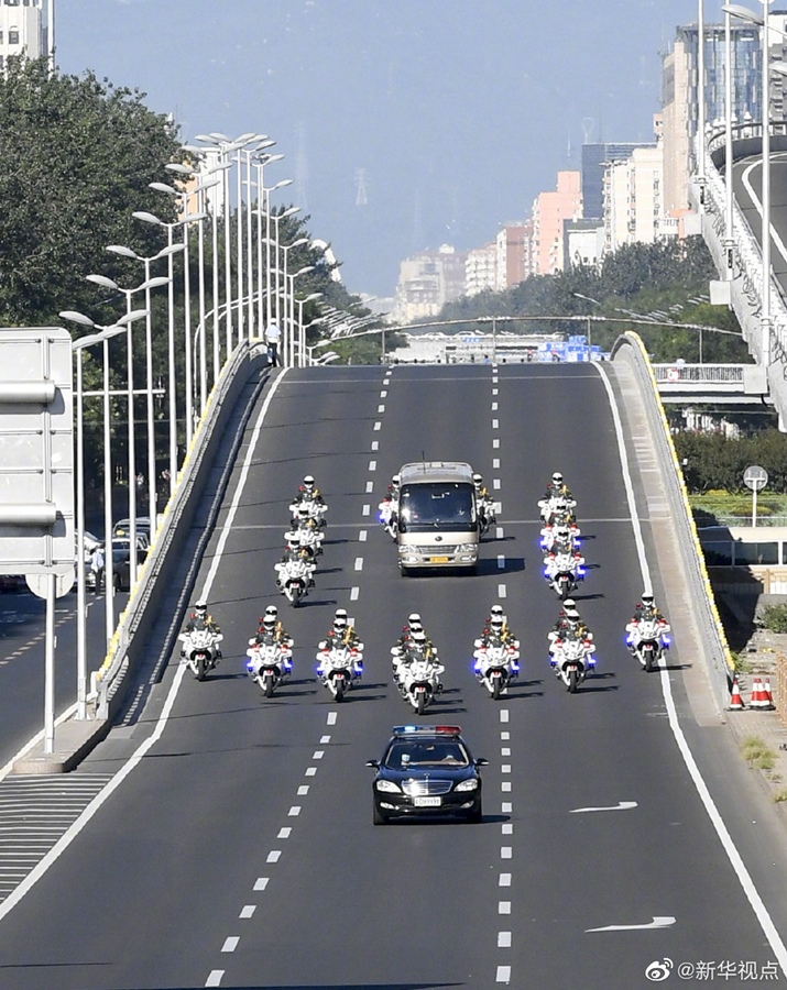 國家勛章和國家榮譽稱號獲得者集體乘坐禮賓車從住地出發(fā),由國賓護衛(wèi)隊護衛(wèi)前往人民大會堂。