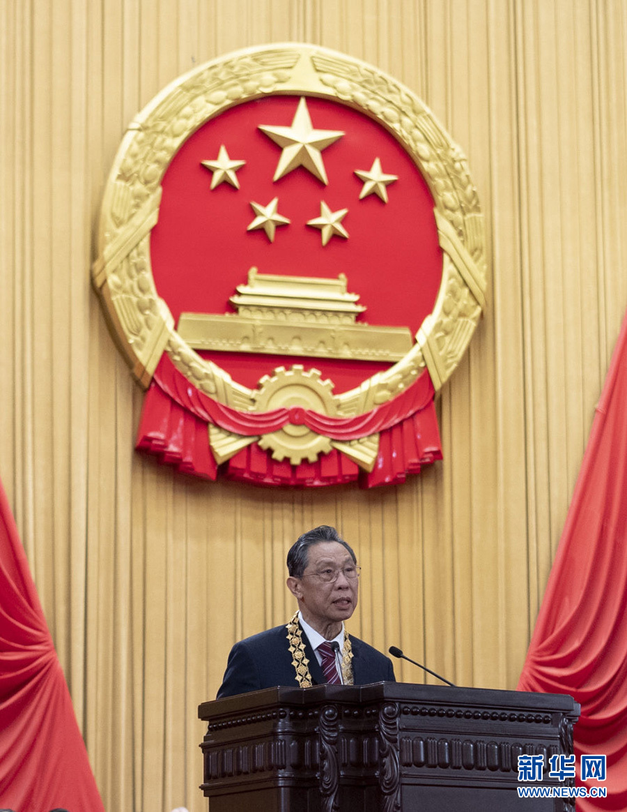 9月8日上午,全國(guó)抗擊新冠肺炎疫情表彰大會(huì)上,“共和國(guó)勛章”獲得者鐘南山發(fā)言。新華社記者 謝環(huán)馳 攝