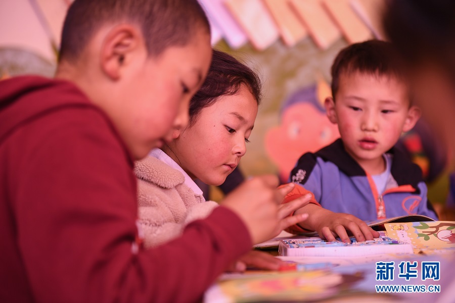 9月17日,在青海省果洛藏族自治州瑪沁縣拉加鎮(zhèn)中心幼兒園,孩子們正在專心上美術課。(新華網(wǎng)潘彬彬 攝)