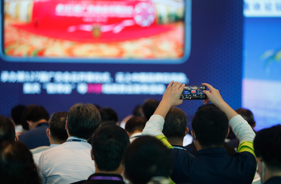 ??? 9月27日,2020中國網(wǎng)絡(luò)媒體論壇內(nèi)容論壇在上海舉行,各界嘉賓圍繞“后疫情時(shí)代網(wǎng)絡(luò)傳播的‘變’與‘新’”這一主題開展探討和交流。圖為觀眾在論壇現(xiàn)場拍攝。