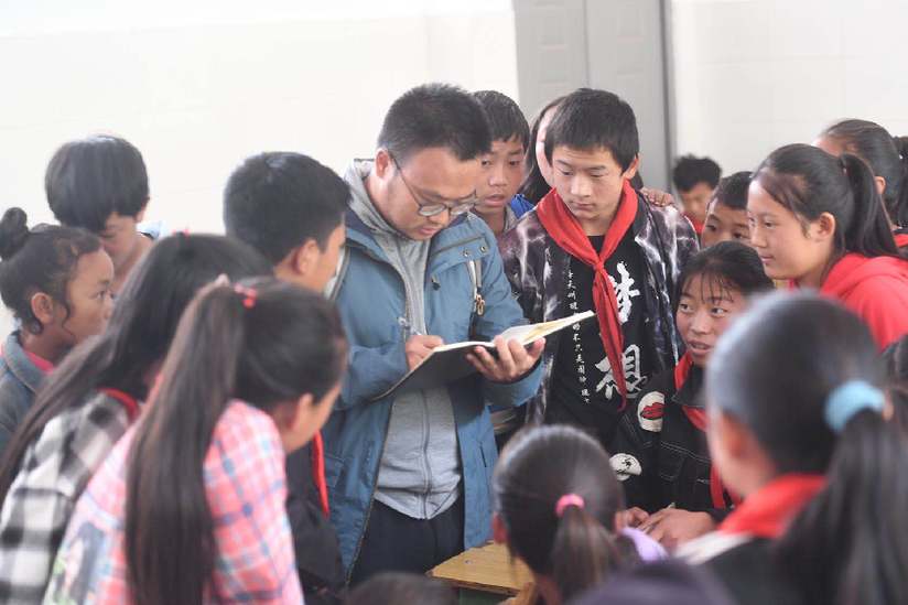 四川日?qǐng)?bào)侯沖在美姑縣典補(bǔ)鄉(xiāng)中心小學(xué)采訪當(dāng)?shù)乜剌z保學(xué)