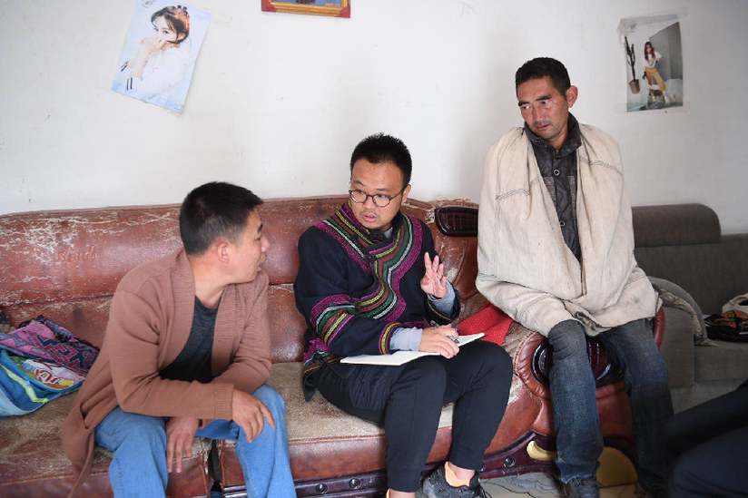 四川日?qǐng)?bào)記者侯沖在彝族群眾家中采訪