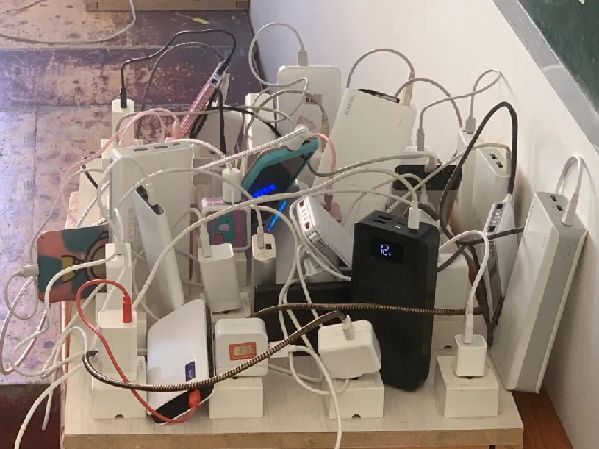 每間教室的講臺(tái)旁邊都放著一排插線板,上面插滿了充電寶。據(jù)學(xué)生介紹,學(xué)校封禁了宿舍內(nèi)的插電孔,他們只能將充電寶在教室充滿電后帶回宿舍用?!坝袝r(shí)候教室里充電的地方滿了,要么排隊(duì),要么去超市花錢(qián)充。”由于宿舍沒(méi)插電孔、沒(méi)網(wǎng),這里的大學(xué)生幾乎沒(méi)人用電腦。小許說(shuō),學(xué)校說(shuō)宿舍不能充電是為了防火安全,但是如此管理未免太過(guò)“簡(jiǎn)單粗暴”。
