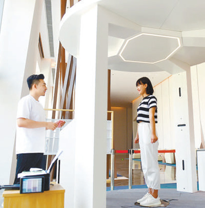 顧客在滄州市明珠國際服裝生態(tài)新城進行3D掃描量體。本報記者 史自強攝