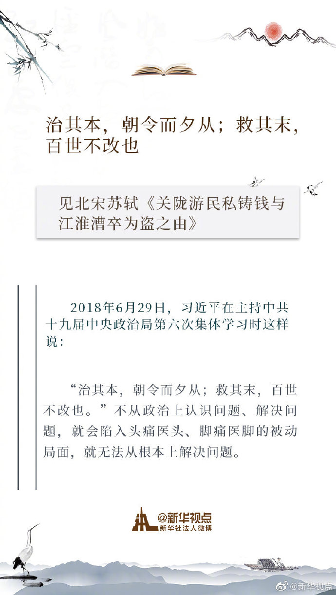 習(xí)近平總書(shū)記發(fā)表的一系列重要講話(huà)和文章中,精妙的典故信手拈來(lái),廣博的引用貫通古今。從這些用典中,既可以追溯習(xí)近平新時(shí)代中國(guó)特色社會(huì)主義思想的源頭活水,又能在古為今用的創(chuàng)造性轉(zhuǎn)化中感受中華優(yōu)秀傳統(tǒng)文化的博大精深。