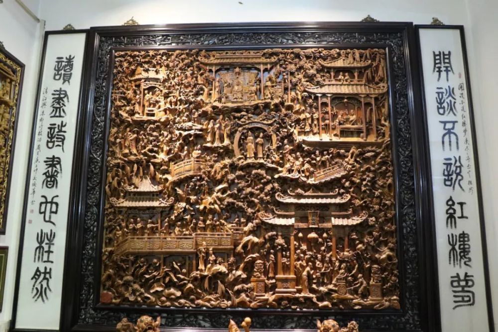 木雕大師金子松創(chuàng)作的素雕作品——《紅樓夢·大觀園》 。新華社記者 孟宜霏 攝
