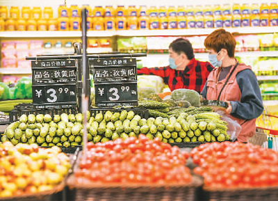10月15日,居民在河北省遵化市一家超市選購蔬菜。劉滿倉攝(人民視覺)