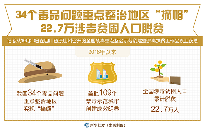 新華社成都10月20日電(記者熊豐)2018年以來,我國34個毒品問題重點整治地區(qū)實現(xiàn)“摘帽”,首批109個禁毒示范城市創(chuàng)建成效明顯,全國涉毒貧困人口累計脫貧22.7萬人。