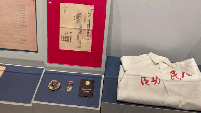 在新華社社史館二樓的展廳里,除了上述文字,還擺放著當(dāng)年電文的手寫(xiě)原稿,戰(zhàn)地記者的筆記本、記者證,以及獲得的各種軍功獎(jiǎng)?wù)拢€有戰(zhàn)場(chǎng)上用過(guò)的電文發(fā)報(bào)機(jī)……