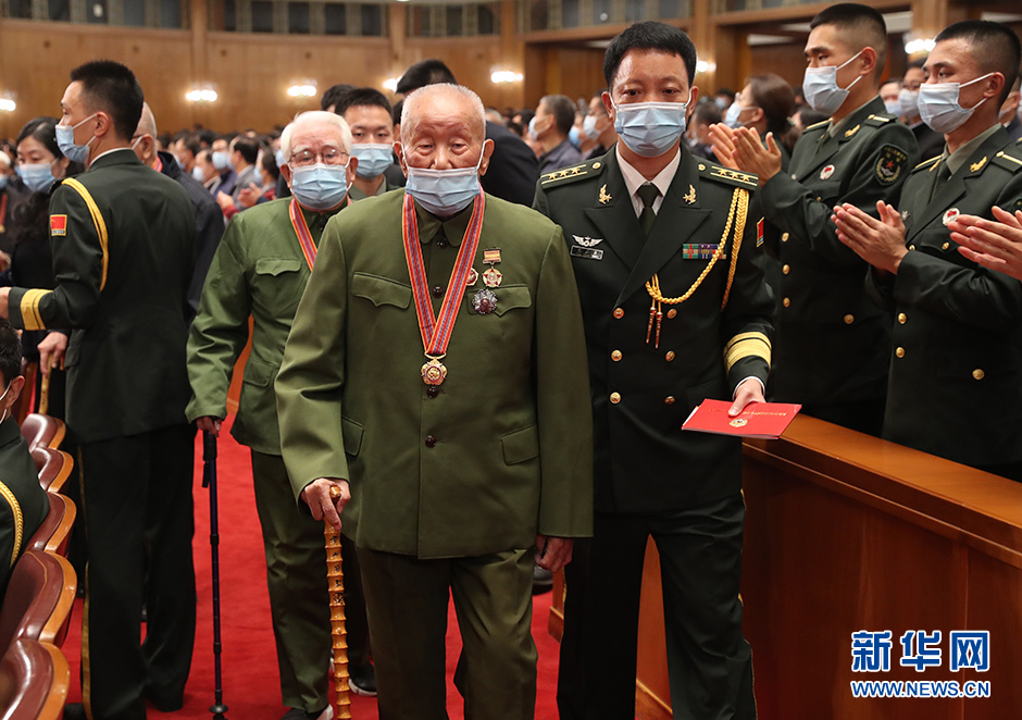 10月23日,紀(jì)念中國(guó)人民志愿軍抗美援朝出國(guó)作戰(zhàn)70周年大會(huì)在北京人民大會(huì)堂隆重舉行。圖為志愿軍老戰(zhàn)士、老同志入場(chǎng)。(新華網(wǎng) 翟子赫 攝)