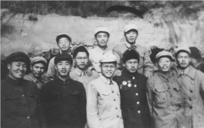 抗美援朝時(shí)期新華社前線記者與空軍英雄張積慧的合影,前排右起為蘇群、謝芝麟、張積慧、曾思明、劉紫池、殷步實(shí);二排右起為丁德潤(rùn)、崔佳山;三排右起為閻吾、徐熊、朱承修。