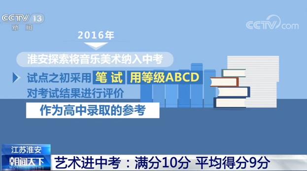 2016年,淮安探索將音樂美術(shù)納入中考,試點(diǎn)之初采用筆試、用等級ABCD對考試結(jié)果進(jìn)行評價,作為高中錄取的參考。2018年,改革進(jìn)一步深化,音樂、美術(shù)各以滿分5分分值計入中考總分,共十分,考核內(nèi)容主要是音樂、美術(shù)基本知識和基本素養(yǎng),考試方式由筆試調(diào)整為人機(jī)對話考核,不再局限在基本知識,而是注重考察學(xué)生對音樂和美術(shù)作品等欣賞辨析能力。