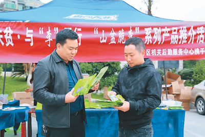 日前,貴州省遵義市匯川區(qū)山盆鎮(zhèn)黨委攜手匯川區(qū)機(jī)關(guān)后勤服務(wù)中心開展“消費(fèi)扶貧”推介活動,將“山盆脆李”系列產(chǎn)品推向市場,果干、果酒的單日銷售額達(dá)一點(diǎn)四萬元。周 麗攝(人民視覺)