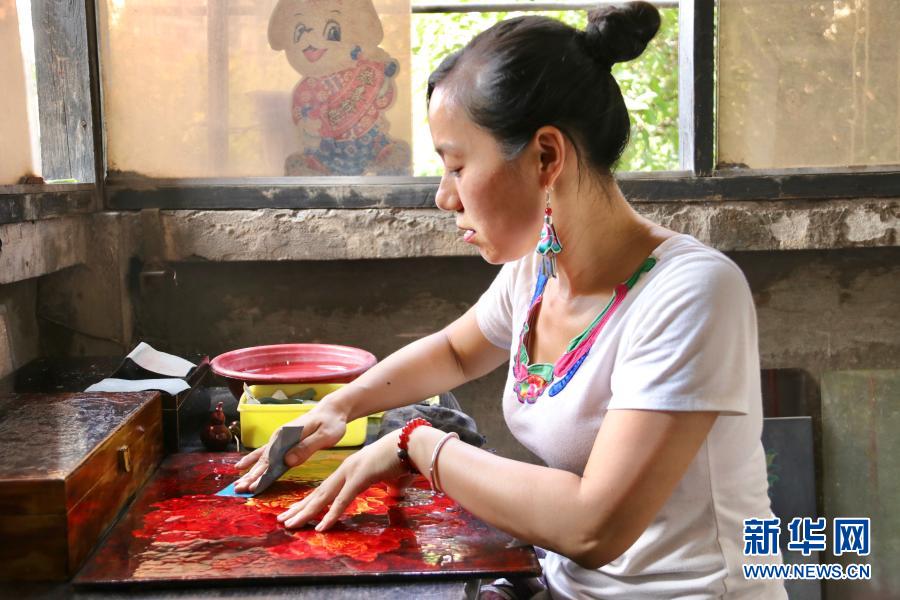 重慶漆藝第六代市級(jí)傳承人陳芷月在漆藝工作室制作漆器(8月10日攝)。新華社記者 吳燕霞 攝