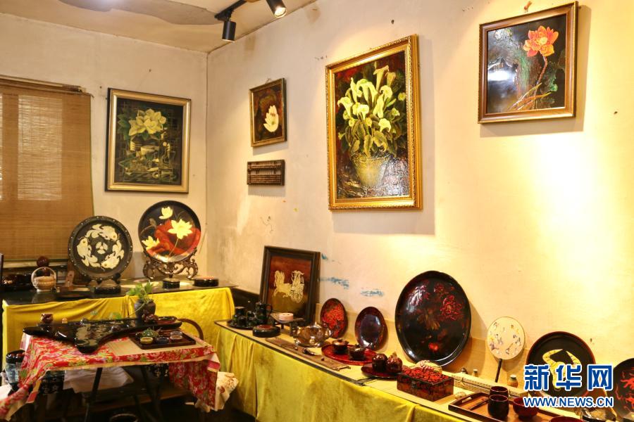 重慶漆藝第六代市級(jí)傳承人陳芷月的漆藝工作室里,陳列著她制作的漆器(8月10日攝)。新華社記者 吳燕霞 攝