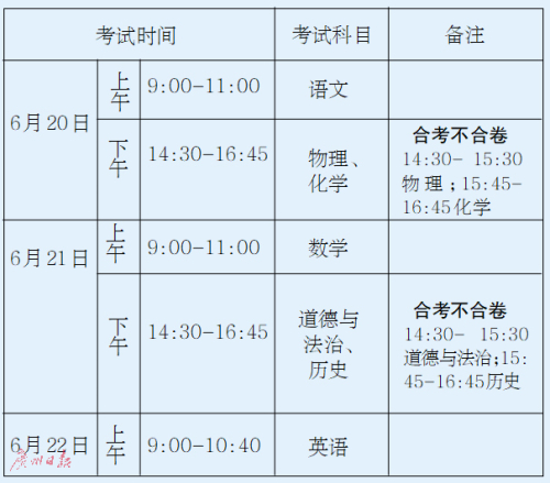 答:《廣州市教育局關于進一步深化高中階段學??荚囌猩贫雀母锏膶嵤┮庖姟罚ㄋ虢桃?guī)字〔2018〕8號)規(guī)定,物理和化學、道德與法治和歷史科目考試實行“合考不合卷”。合考的兩個學科安排在同一場次依次進行考試,試卷分開收發(fā),兩科考試中間安排15分鐘時間收發(fā)試卷,期間考生原則上不得離開考場。