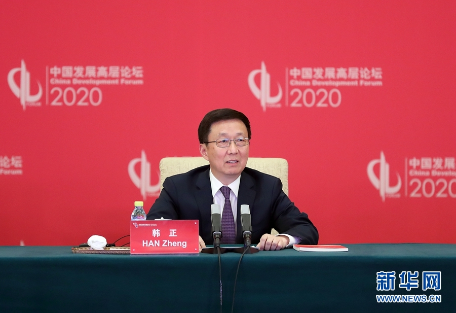 11月11日晚,中國發(fā)展高層論壇2020年年會在北京開幕。中共中央政治局常委、國務院副總理韓正出席開幕式并致辭。新華社記者 姚大偉 攝