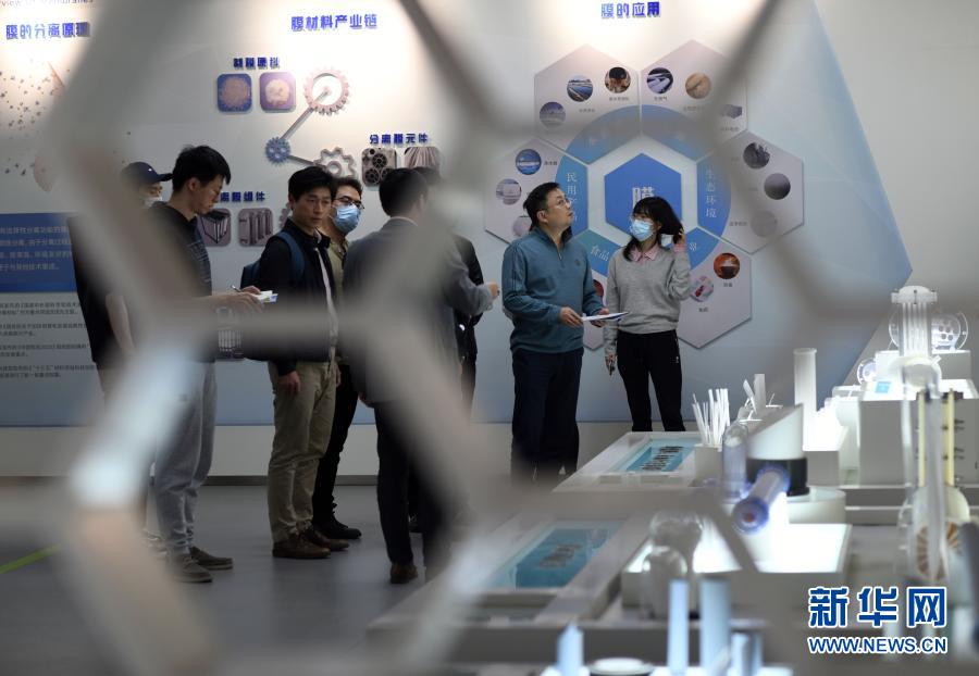 記者在江蘇省產(chǎn)業(yè)技術(shù)研究院膜科學(xué)技術(shù)研究所展廳參觀(11月5日攝)。新華社記者 金良快 攝