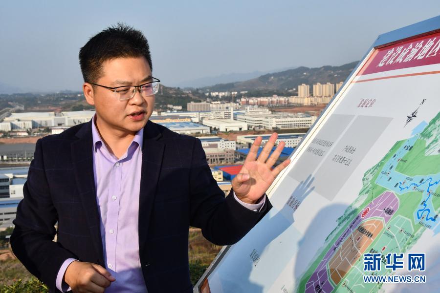在四川省廣安市鄰水縣川渝合作高灘園區(qū),鄰水縣副縣長趙冬介紹園區(qū)遠景目標(11月12日攝)。新華社記者 周相吉 攝