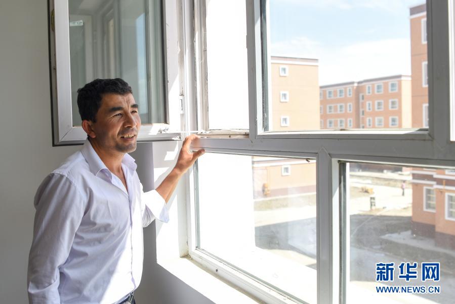 新疆葉城縣棋盤(pán)鄉(xiāng)居民來(lái)到葉城縣易地扶貧搬遷物流園區(qū)安置點(diǎn)查看新房(2019年8月19日攝)。新華社記者 丁磊 攝