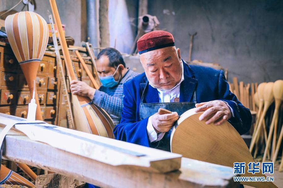 在村里,艾依提·依明與其他幾位“非遺”傳承人,不僅是技藝傳播者,也是致富帶頭人。因為艾依提·依明制作的樂器音節(jié)準、音色美、造型漂亮,深受市場歡迎,附近很多村民慕名前來拜師學藝。他回憶,幾十年來,他已帶出200多名徒弟,這些來自貧困家庭的農(nóng)村年輕人通過幾年學習,基本都可以靠樂器制作、維修、演奏實現(xiàn)增收。