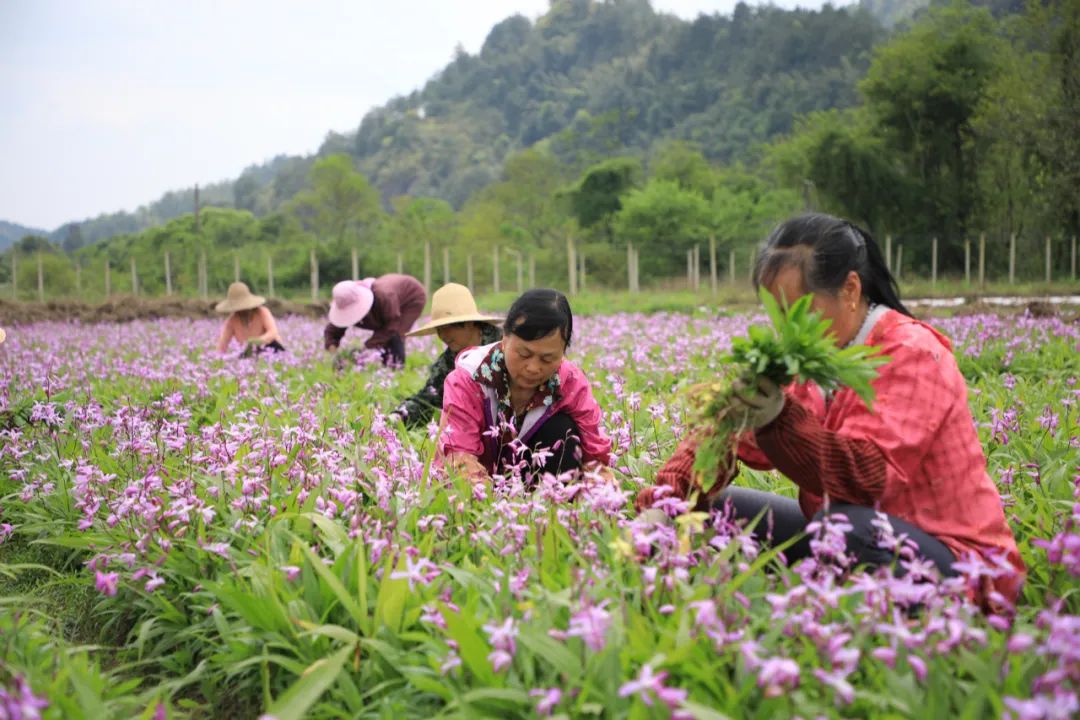 贛州市石城縣大由鄉(xiāng)貧困戶在下伊村中藥材白芪種植基地勞作 黃媛媛 攝