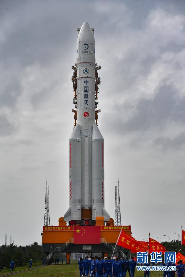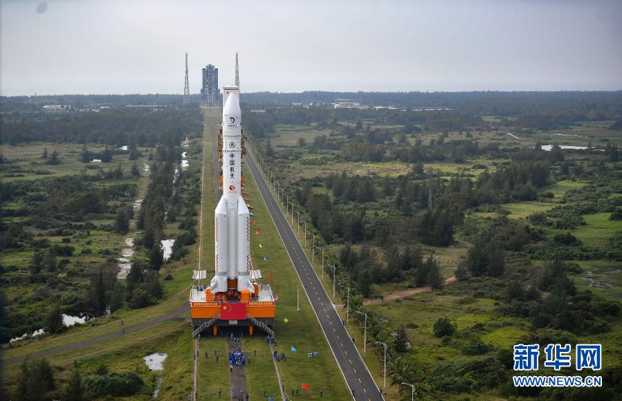 長(zhǎng)征五號(hào)遙五運(yùn)載火箭于9月下旬由遠(yuǎn)望運(yùn)輸船隊(duì)安全運(yùn)抵海南文昌清瀾港,并通過(guò)公路運(yùn)輸方式分段運(yùn)送至中國(guó)文昌航天發(fā)射場(chǎng)。此后,火箭按照測(cè)試發(fā)射流程,陸續(xù)完成了總裝、測(cè)試等各項(xiàng)準(zhǔn)備工作。