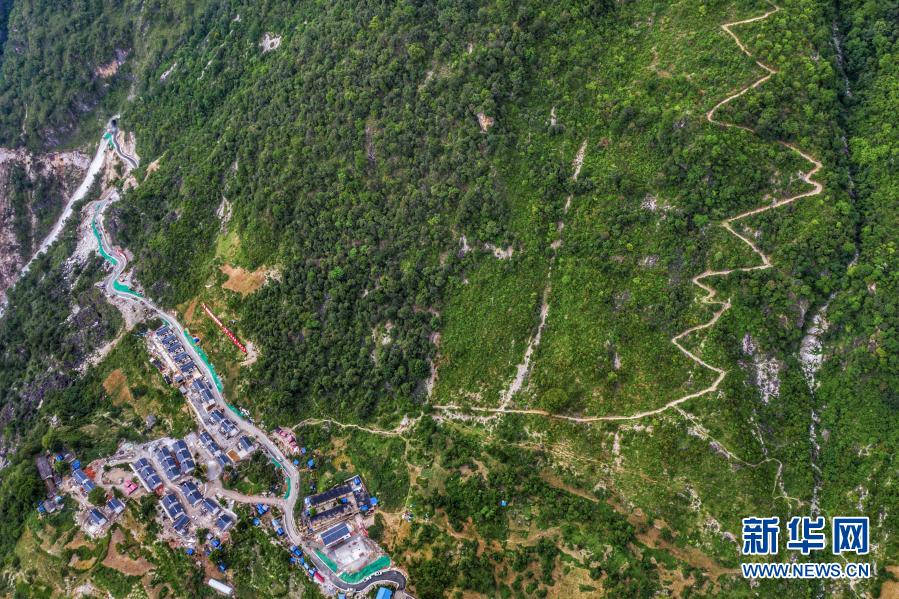 金陽(yáng)縣天地壩鎮(zhèn)通往吉史里口村易地扶貧搬遷集中安置點(diǎn)的道路(6月7日攝,無(wú)人機(jī)照片)。新華社記者 江宏景 攝