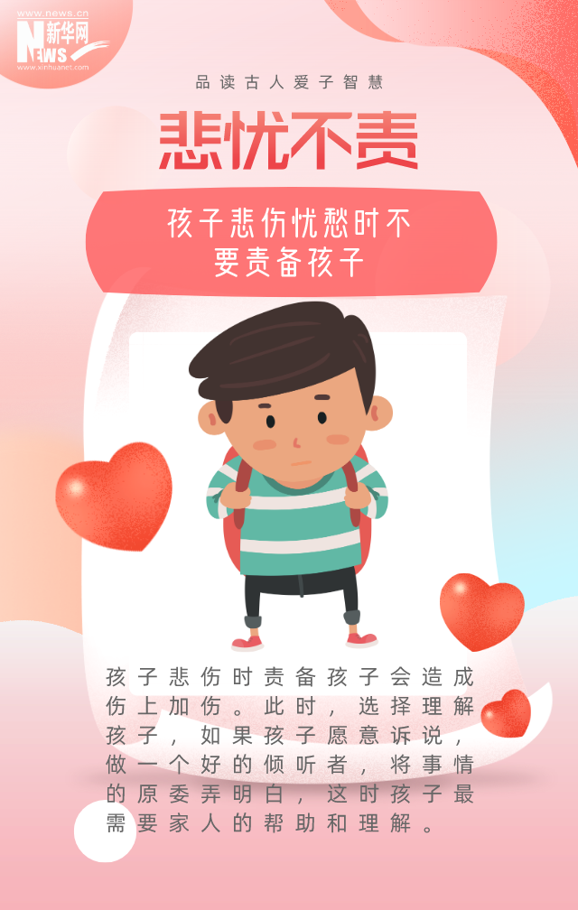 如何呵護(hù)孩子幼小的心靈,給他們一個(gè)健康的成長(zhǎng)環(huán)境?古時(shí)候有非常多的教育理念,蘊(yùn)含了深刻的心理學(xué)和教育學(xué)原理。其中,著名的愛(ài)子“七不責(zé)”成為經(jīng)典教育理念:“卑幼有過(guò),慎其所以責(zé)讓之者。對(duì)眾不責(zé),愧悔不責(zé),暮夜不責(zé),正飲食不責(zé),正歡慶不責(zé),正悲憂(yōu)不責(zé),疾病不責(zé)?!?。今天是世界兒童日,一起品讀古人的愛(ài)子智慧。