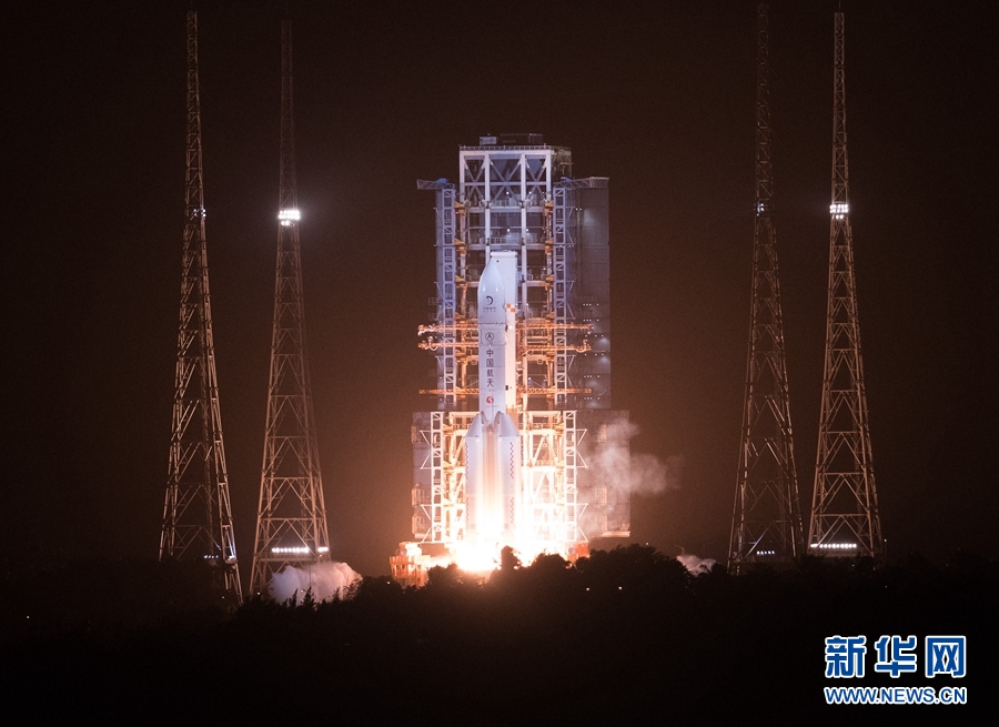 這是長征五號遙五運載火箭發(fā)射升空。新華社記者張麗蕓攝