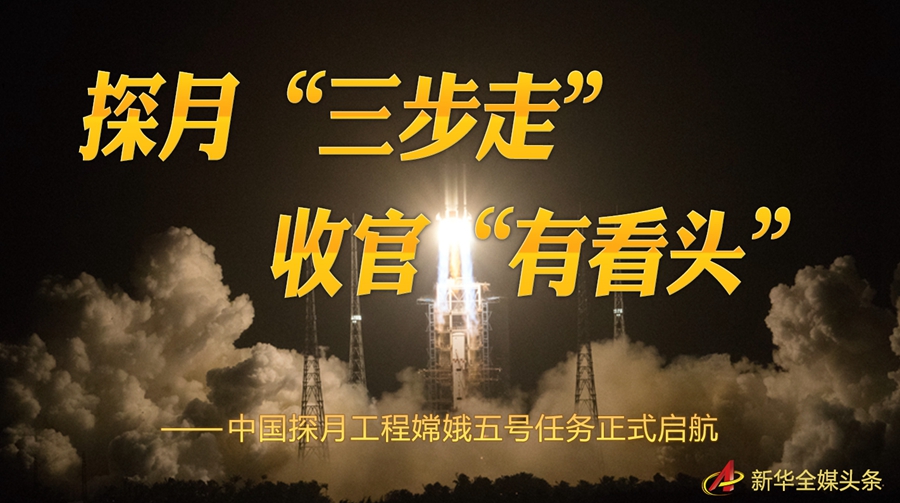 新華社海南文昌11月24日電? 題:探月“三步走” 收官“有看頭”——中國探月工程嫦娥五號任務(wù)正式啟航