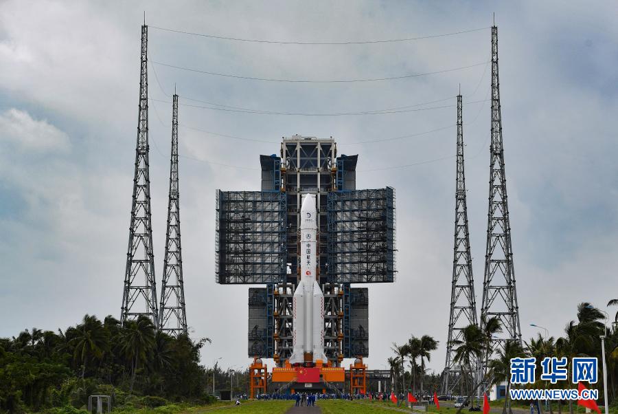11月17日,長征五號遙五運載火箭和嫦娥五號探測器在中國文昌航天發(fā)射場完成技術(shù)區(qū)總裝測試工作后,垂直轉(zhuǎn)運至發(fā)射區(qū),計劃于11月下旬擇機實施發(fā)射。新華社記者 郭程 攝