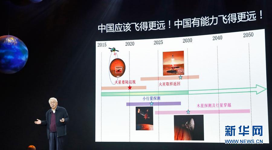 “這次嫦娥五號肩負著月球采樣返回的光榮使命,我們的天問一號也正在飛向火星的路上,我們還要飛得更遠,去探測木星、小行星并建設(shè)我們的國際月球科研站。中國已經(jīng)昂首進入了深空探測的新時代?!睔W陽自遠說。