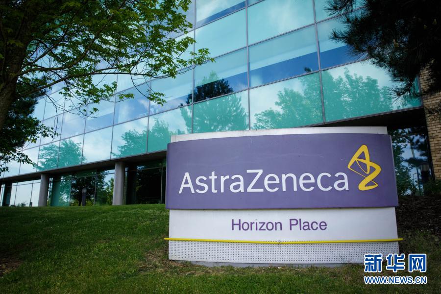 這是5月18日在英國盧頓拍攝的阿斯利康標(biāo)識(shí)。新華社發(fā)(蒂姆·愛爾蘭 攝)