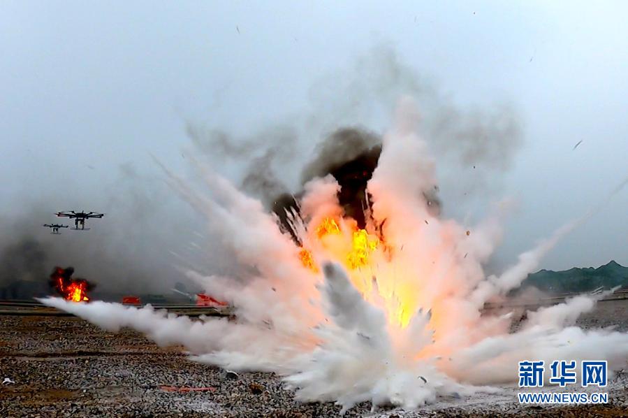 油料保障隊(duì)組織參賽隊(duì)員進(jìn)行無人機(jī)滅火作業(yè)(12月1日視頻截圖)。新華社發(fā)(呂冀周 攝)