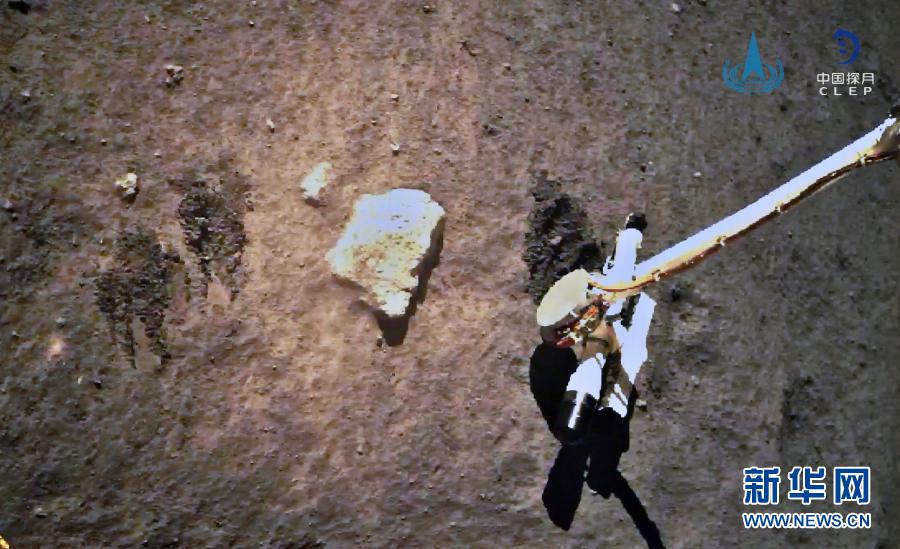 12月2日,嫦娥五號(hào)探測(cè)器在月球表面自動(dòng)采樣。