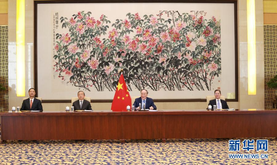 12月4日,國家副主席王岐山在北京以視頻方式會見清華大學(xué)經(jīng)濟管理學(xué)院顧問委員會海外委員和中方企業(yè)家委員。 新華社記者 丁林 攝