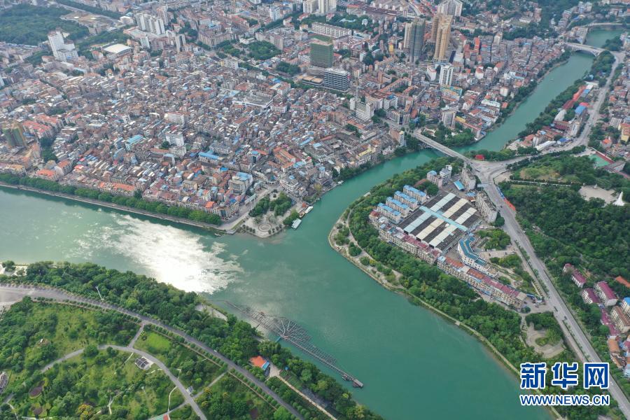 廣西百色市城區(qū)新貌(2019年8月29日攝,無(wú)人機(jī)照片)。新華社記者 曹祎銘 攝