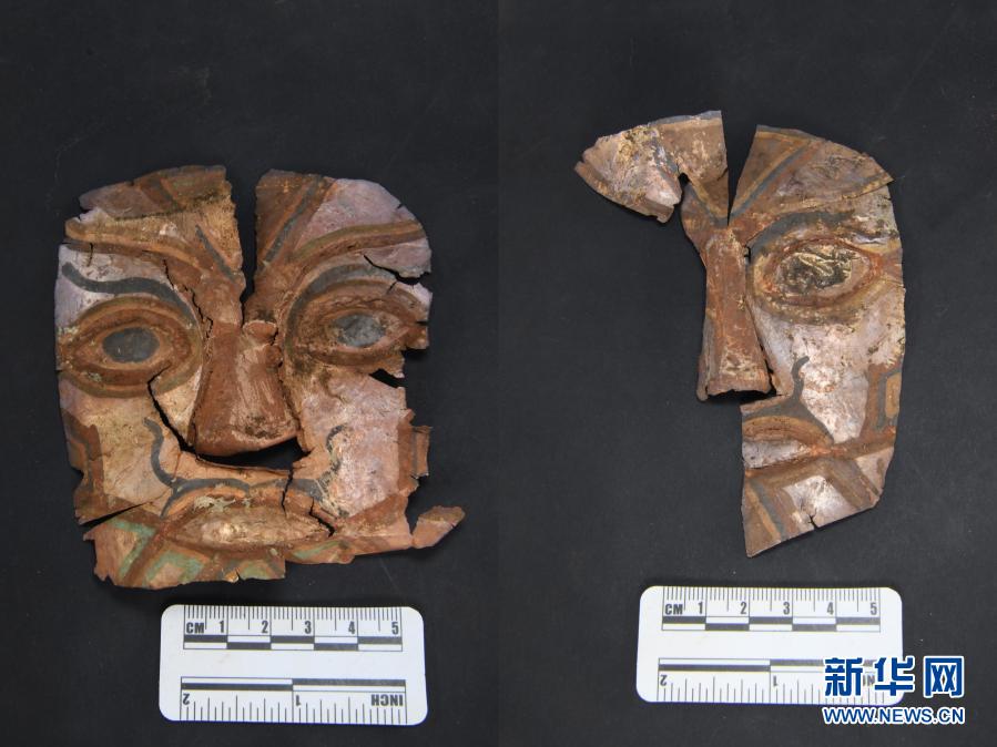 桑達(dá)隆果墓地出土的面飾(資料照片)。新華社發(fā)