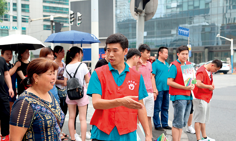 2018年夏季,快遞小哥柴閃閃在上?;疖囌灸蠌V場(chǎng)恒豐路口做文明出行的指路志愿者