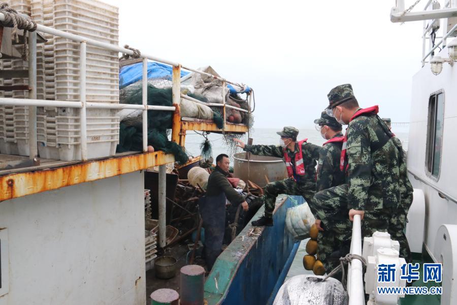 海警執(zhí)法員登船檢查(5月8日攝)。新華社發(fā)(江壯志 攝)