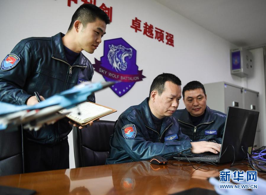 12月7日,王建東(中)與戰(zhàn)友一起進行航理學習研究。新華社發(fā)(唐俊 攝)