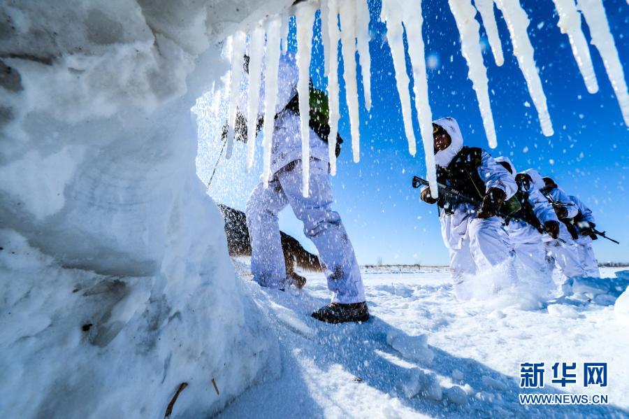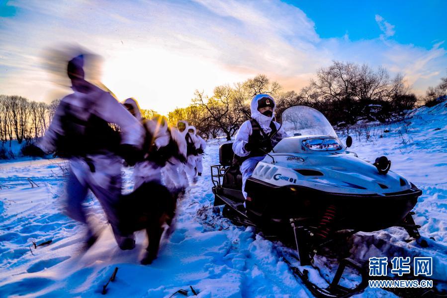 東極哨所官兵組織摩托雪橇和執(zhí)勤分隊進(jìn)行聯(lián)合戰(zhàn)術(shù)演練(11月4日攝)。新華社發(fā)(李寶成 攝)