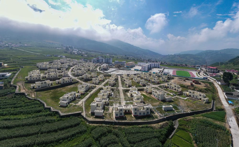 這是9月1日在四川省涼山彝族自治州喜德縣魯基鄉(xiāng)中壩村拍攝的易地扶貧搬遷安置點(無人機(jī)照片)。新華社記者 王曦 攝