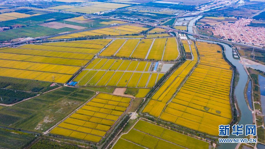 9月22日拍攝的河北省唐山市蘆臺經(jīng)濟(jì)開發(fā)區(qū)海北鎮(zhèn)的水稻田(無人機(jī)照片)。